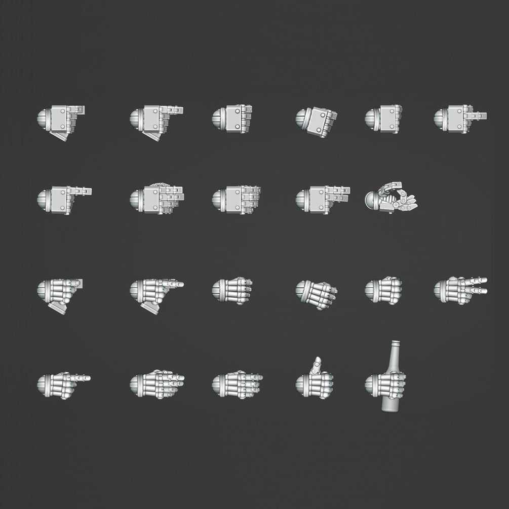 Included are a sizeable amount of bionic arm variants (20, 40 if you just hit that sweet mirror-button), including a lot of hands to go with them.