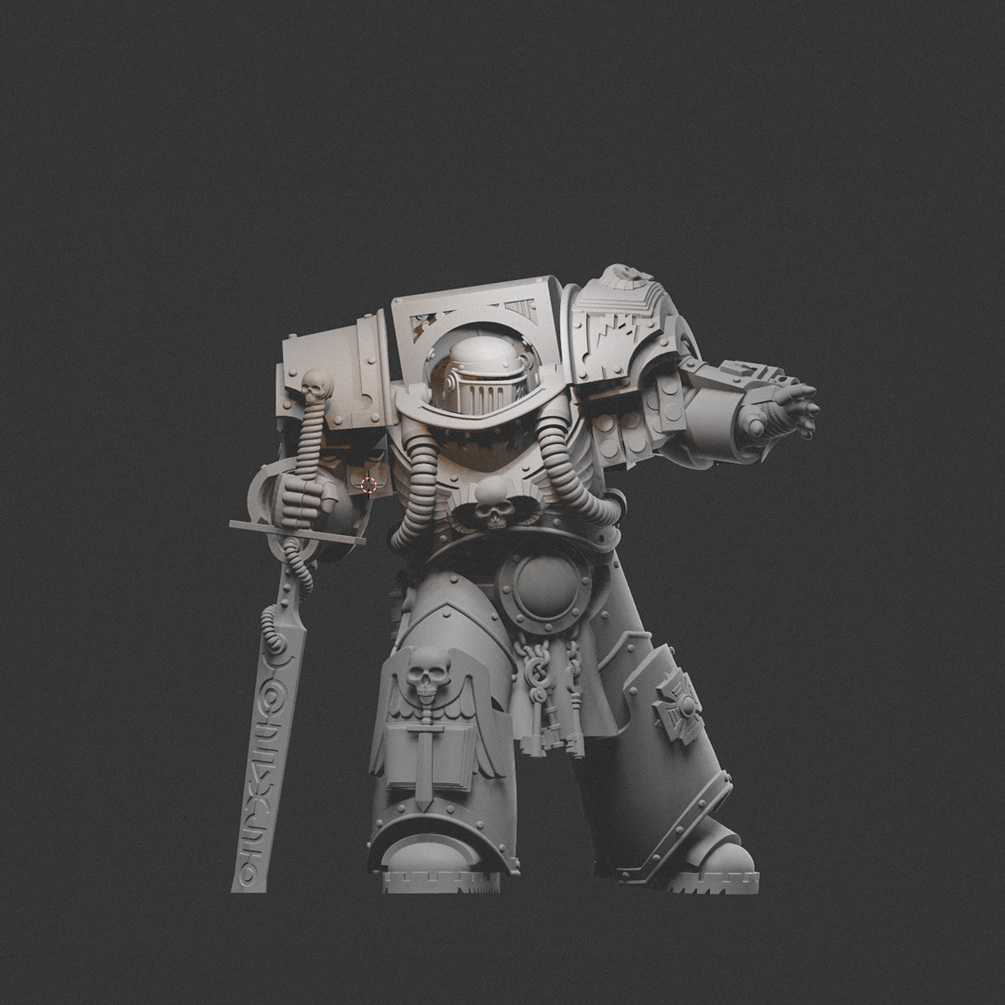 This model is made for 32mm wargaming. Representing giant super-soldiers reaching a height of 2,5m (8ft), i modelled it to be taller & broader than familiar miniatures to display that. It still look great downscaled to more common sizes!